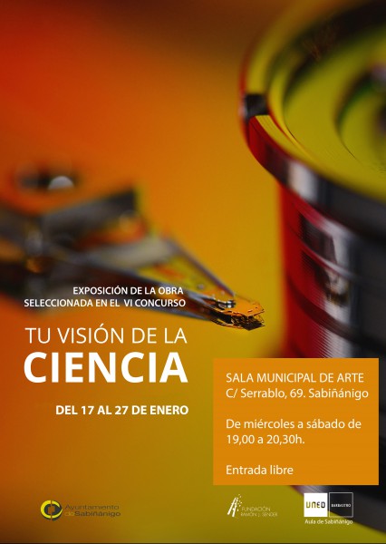En el marco de la Semana de la Ciencia, que celebra el Centro de la UNED de Barbastro cada año,se convoca un concurso de fotografía cuya temática debe versar sobre ciencia y tecnología, en sus múltiples vertientes. las dos categorías del certamen acogieron el curso pasado, en su sexta edición, 141 obras procedentes de distintos lugares de la geografía española (104 en 1ª categoría abierta y 37 en 2 ª categoría para escolares). El jurado seleccionó las 32 obras (25 y 7 de cada categoría, respectivamente) que figuran en esta exposición que ahora se muestra en Sabiñánigo. Diferentes visiones de la ciencia mostradas a través de las fotografías que no dejarán indiferente a los visitantes por su originalidad, impacto visual y sensibilidad artística. La fotografía ganadora en la categoría abierta lleva por título “Escritura en color” de Julián Vaquero Gutiérrez y el premio para escolares fue para “Dirección: Marte” de Belén Laguarta Castán.