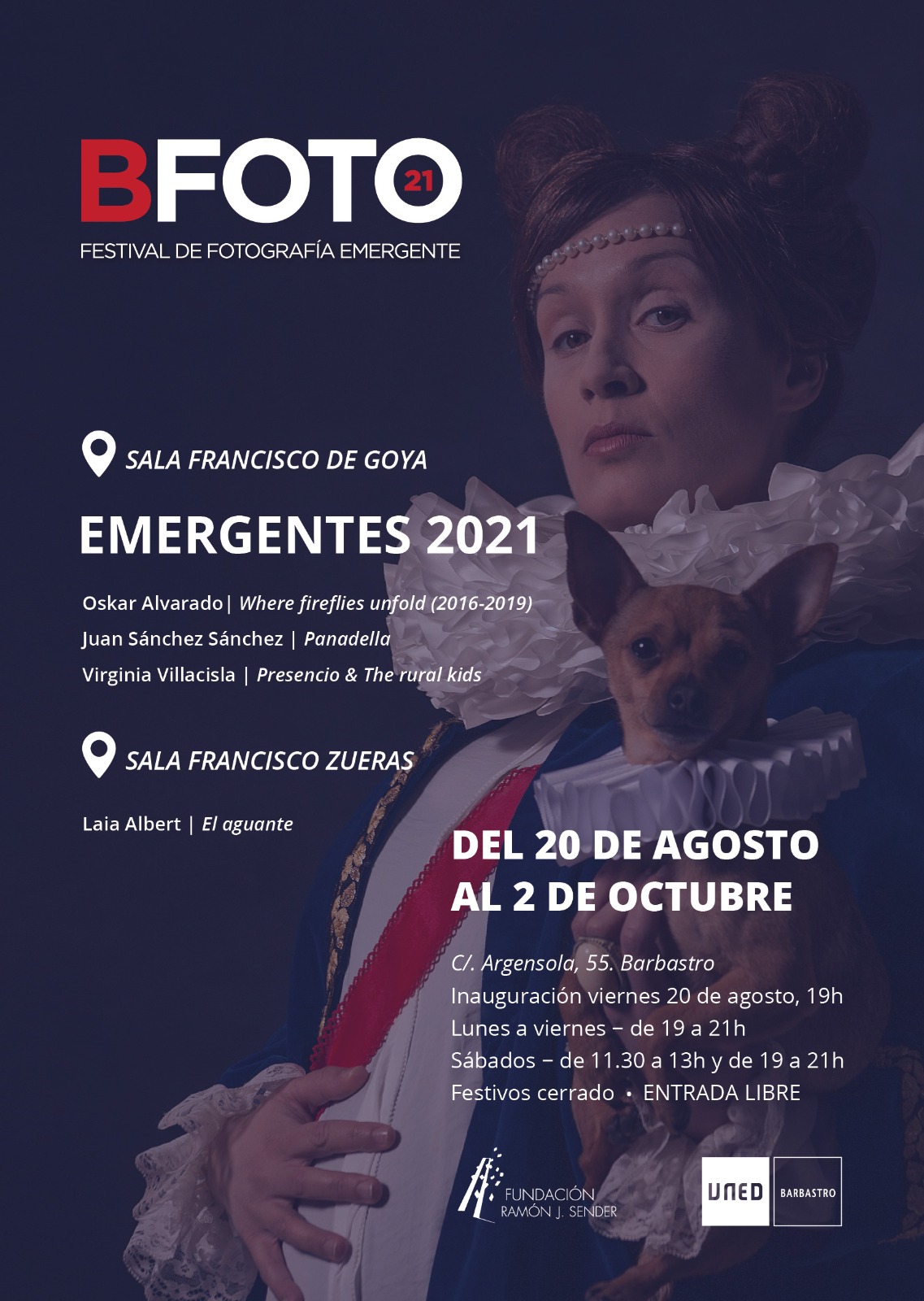 Del 20 de agosto hasta el 2 de octubre se podrá visitar en la Sala Francisco de Goya la exposición de los proyectos "Where fireflies unfold" de Oskar Alvarado, "Panadella" de Juan Sánchez y "Presencio & the rural kids" de Viginia Villacisla y en la Sala Francisco Zueras "El aguacate" de Laia Albert.