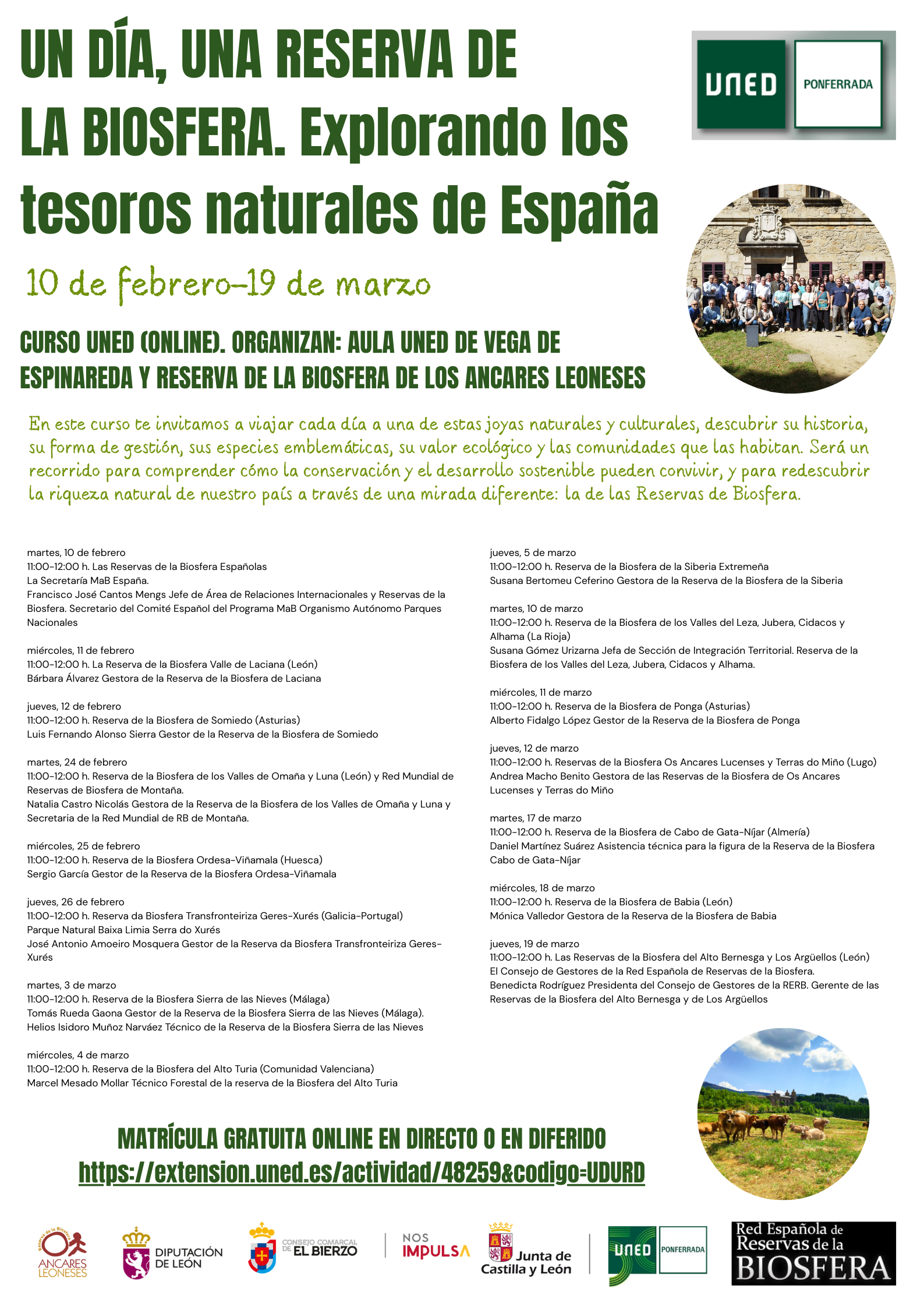 En este curso te invitamos a viajar cada día a una de estas joyas naturales y culturales, descubrir su historia, su forma de gestión, sus especies emblemáticas, su valor ecológico y las comunidades que las habitan. Será un recorrido para comprender cómo la conservación y el desarrollo sostenible pueden convivir, y para redescubrir la riqueza natural de nuestro país a través de una mirada diferente: la de las Reservas de Biosfera.