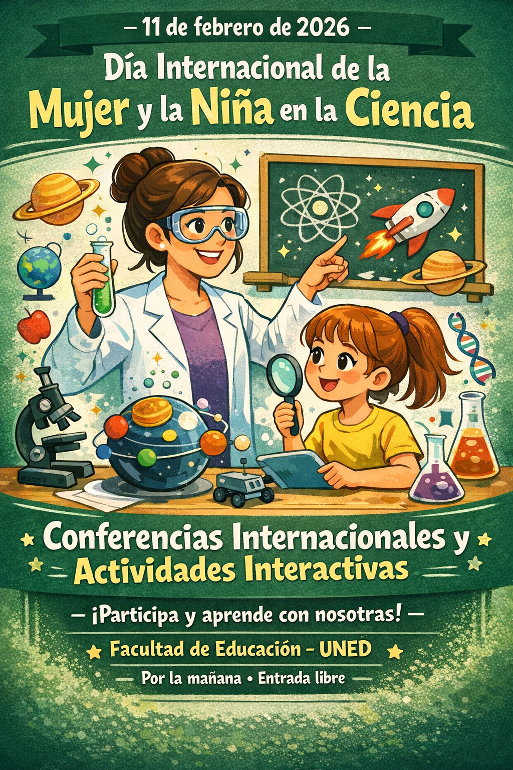 El Día Internacional de la Mujer y la Niña en la Ciencia (11F) constituye una oportunidad clave para visibilizar el papel de las mujeres en la generación de conocimiento científico y para promover vocaciones científicas desde una perspectiva educativa, inclusiva y transformadora.