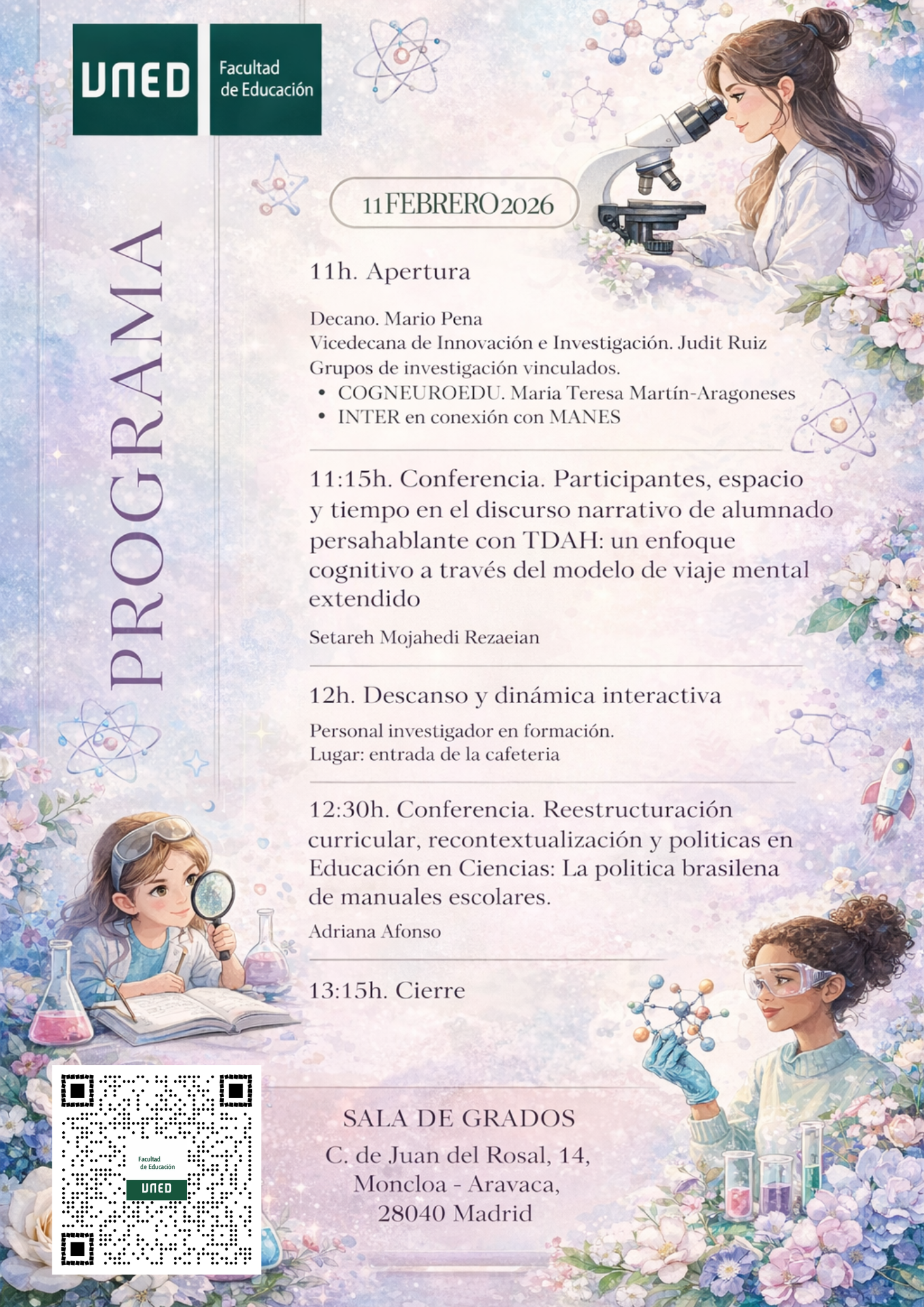 En este marco, la Facultad de Educación de la UNED organiza una jornada abierta el 11 de febrero, en horario de mañana en la Sala de Grados, que combina conferencias internacionales vinculadas a distintos grupos de investigación de la Facultad con actividades dinámicas e interactivas dirigidas a toda la comunidad universitaria.